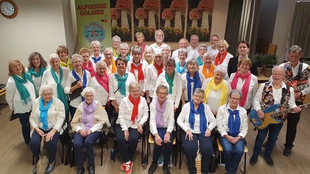 De Alphense Goldies is een enthousiast koor, bestaande uit ca. 50 niet meer zo heel jonge leden. Met veel inzet en plezier zingt het koor merendeels Nederlands- en Engelstalige liederen. Het repertoire varieert van muziek uit the sixties en seventies tot meer hedendaags werk, met af en toe een uitstapje naar wat meer klassieke nummers, zoals Dona Nobis.